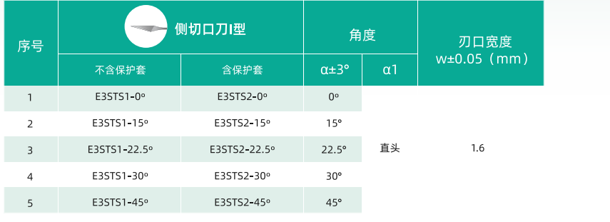刃口宽度1.6mm,规格覆盖5种角度, 带保护套和不带保护套两种设计。