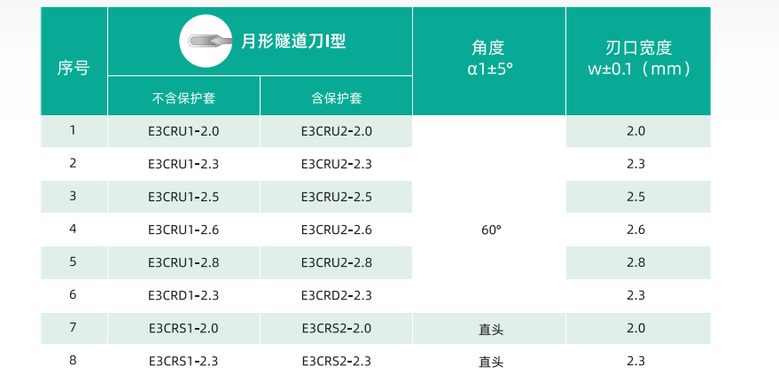 规格覆盖2.0mm-2.8mm不同刃口宽度, 带保护套和不带保护套两种设计